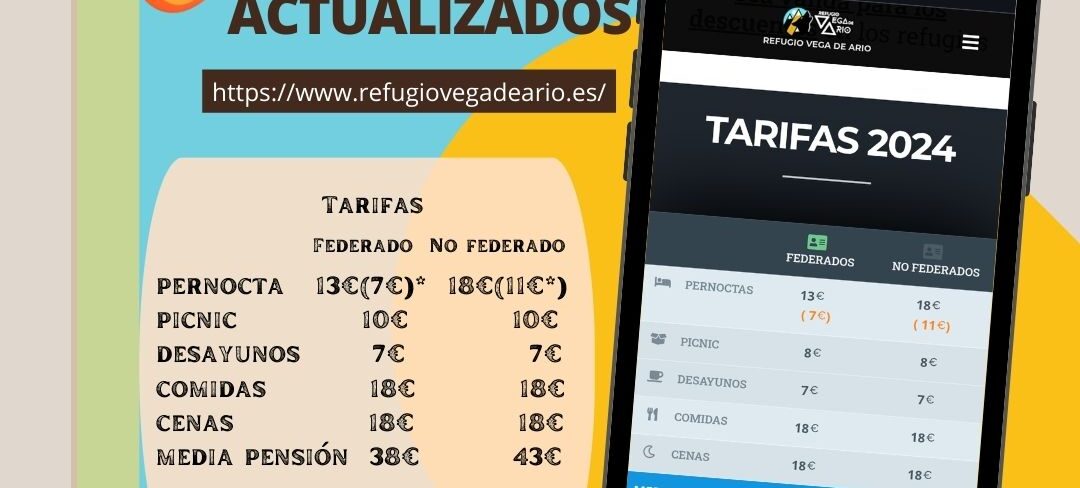 Buenos días amantes de la montaña. Os informamos que hemos realizado un ajuste en nuestras tarifas para la temporada 2024. Este cambio nos permite mantener la calidad de nuestros servicios. ¡Estamos comprometidos a seguir siendo vuestro refugio de confianza! Media pensión federados: 38€Media pensión NO federados: 43€Pernocta federados: 13€Pernocta NO federados: 18€Cenas y Comidas: 18€Desayunos: […]